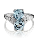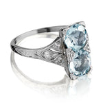 • VINTAGE PLATINUM AQUAMARINE AND DIAMOND RING